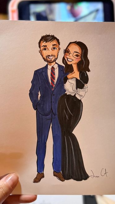 From romantic weddings and heartfelt engagements, to glamorous high school formals, stylish bridal showers, elegant birthday parties, and chic corporate events, Lisa’s hand-drawn portraits provide an unforgettable experience for guests of all ages.