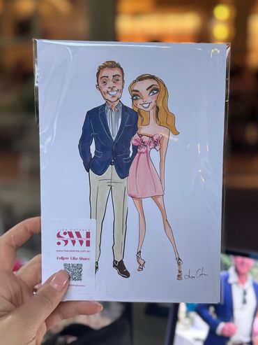 With any live illustration package, you will receive a beautifully A4 Watercolour painted illustration of the bride and groom. This piece will be displayed at my table for all your guests to admire, and it will be presented to you as a special keepsake after the event.
